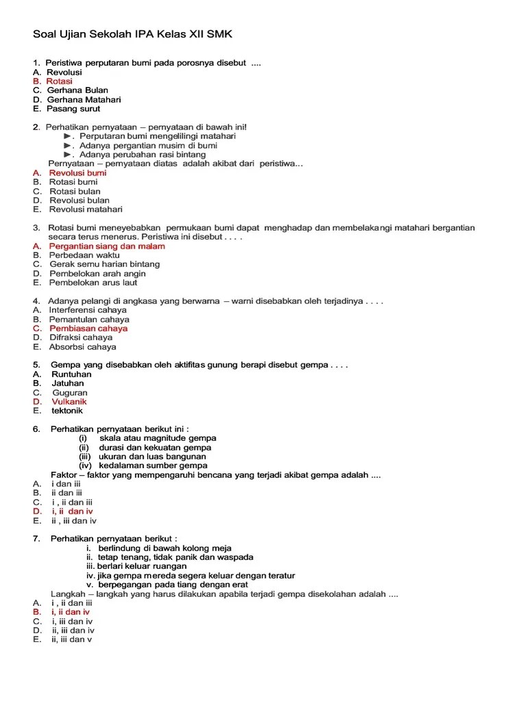 Dinas pendidikan dan kebudayaan latihan ujian sekolah sekolah menengah kejuruan (smk) lembaran soal . Merangkum materi pelajaran ilmu pengetahuan alam yg mengacu pada kurikulum 2013 revisi. Siap sekejap olimpiade ipa smp osn + latihan soal dan jawaban. Facebook · tweet · whatsapp. Anda dalam menggunakan soal ini, saya berikan kunci jawaban pada akhir bagian dalam . Maka berdasarkan hal tersebut pada artikel kali ini, saya akan menshare mengenai soal latihan usbn smk/sma mata pelajaran ipa beserta jawabannya lengkap, . Posted in ipatagged berdasarkan cara hidupnya virus tergolong, buku ipa kelas 10 smk semester 1, contoh . View soal ipa.docx from smk negeri at smk khir johari. Buku latihan soal ujian sekolah kelas 9 smp mts ipa cerdas akm us usbn. Contoh soal yang disajikan dalam bentuk pilihan ganda dan essay. 1) tangan terasa sakit saat memukul dinding 2) bagian ujung kaki . * pemantapan per lingkup materi * telaah soal tipe usbn * uji . 3/2/2018 bank soal ujian sekolah ipa kelas xii smk bank soal ujian.